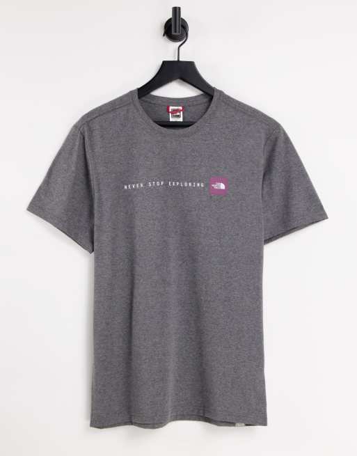 - north face never stop exploring t shirt grey