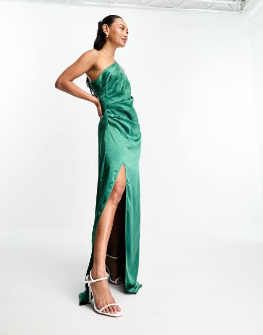 Product id: Green silk 2025 one shoulder dress