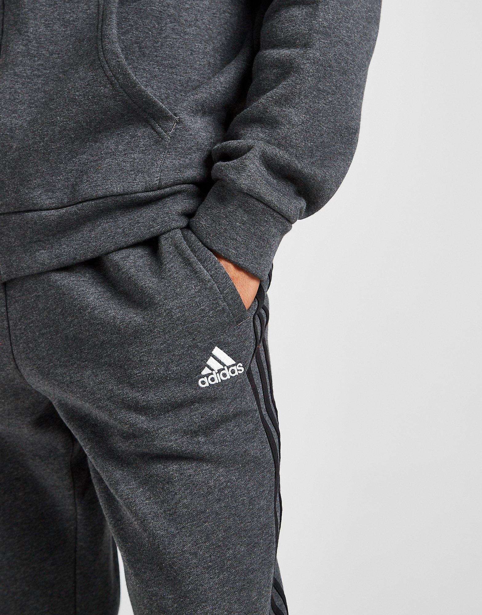 Product id: Grey adidas joggers with 2025 black stripes