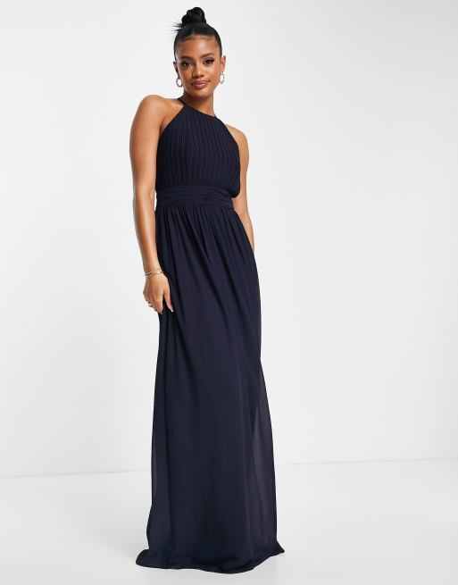Product id: Halterneck chiffon 2025 maxi dress navy