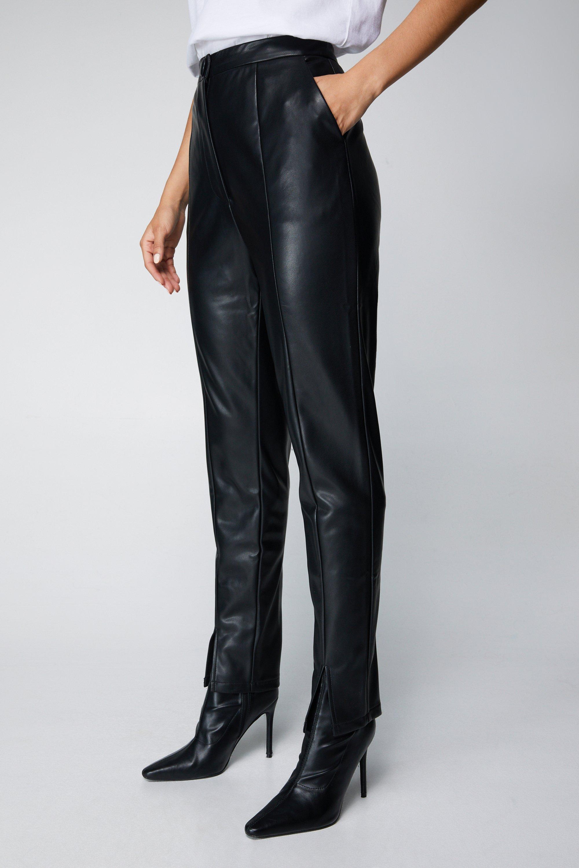- high waisted faux leather trousers