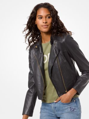 - michael kors black leather biker jacket