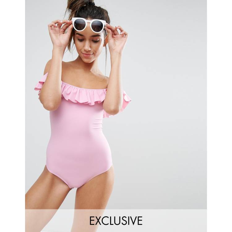 - off the shoulder ruffle tankini