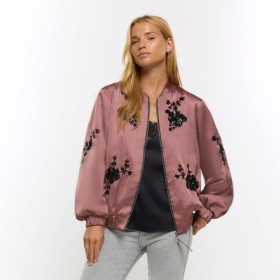 Product id: Pink satin 2025 bomber jacket womens