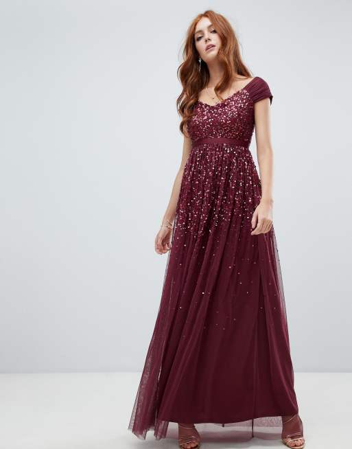 Product id: Amelia rose embellished ombre sequin maxi 2025 dress with cami strap in berry