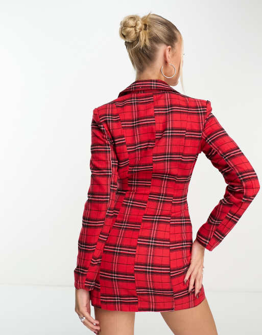 Product id: Red check 2025 blazer dress