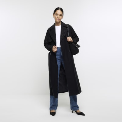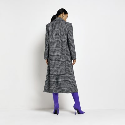 Product id: Ri studio black check 2025 tie waist longline coat