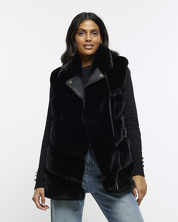 - river island black fur gilet