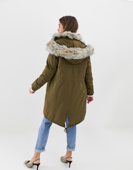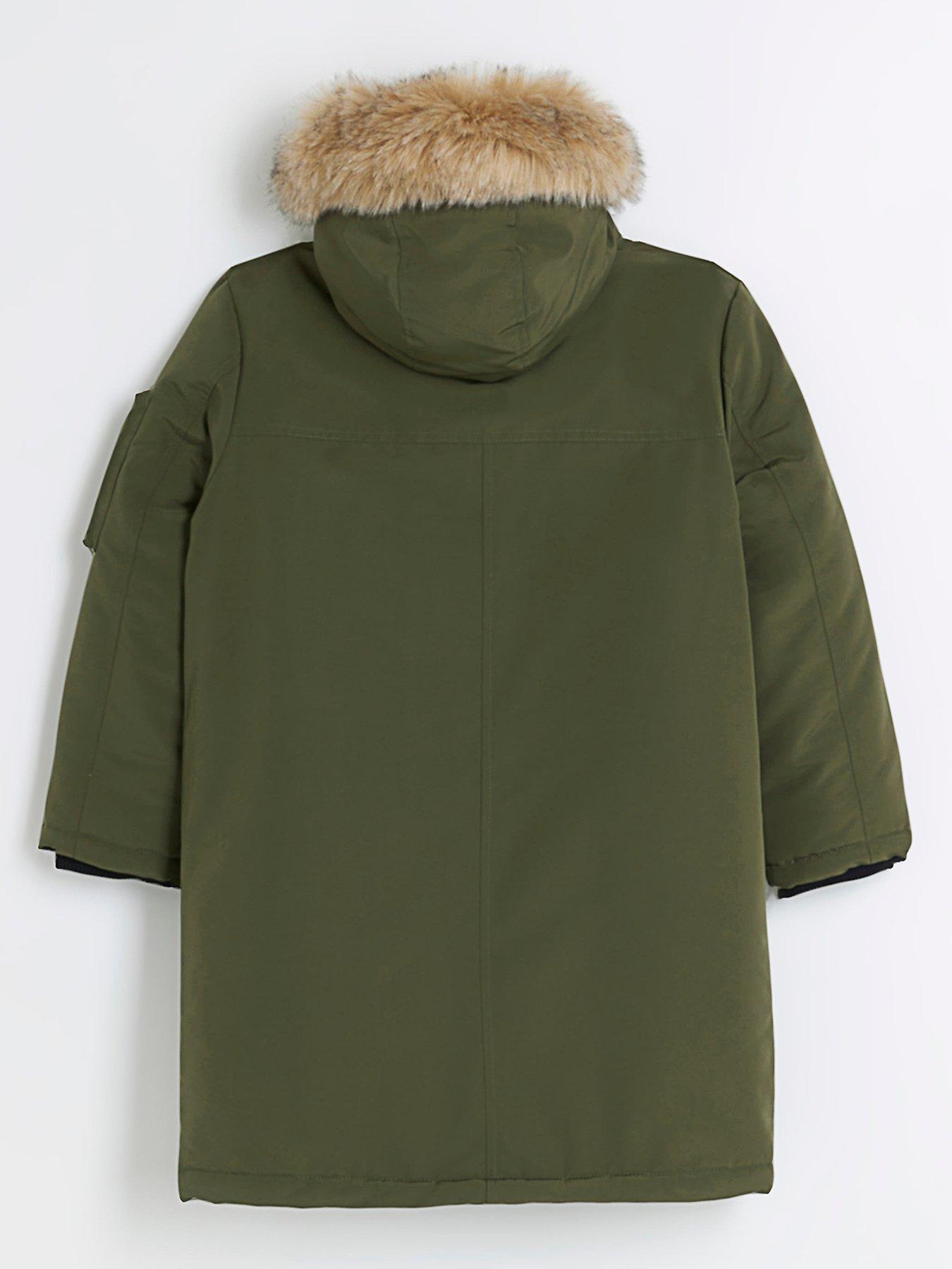 Product id: River island parka with 2025 faux fur trim in khaki