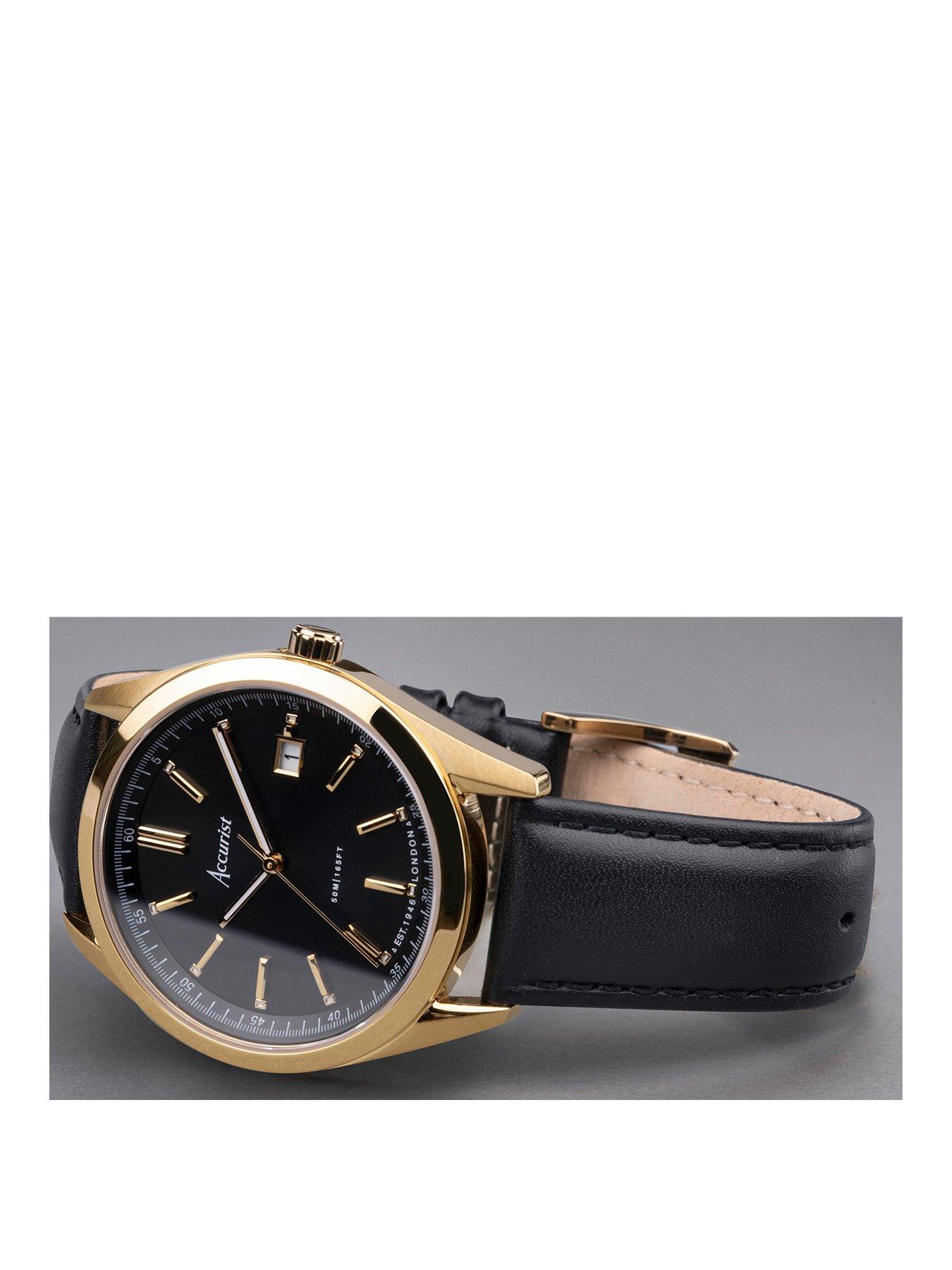 - accurist men's black leather strap watch