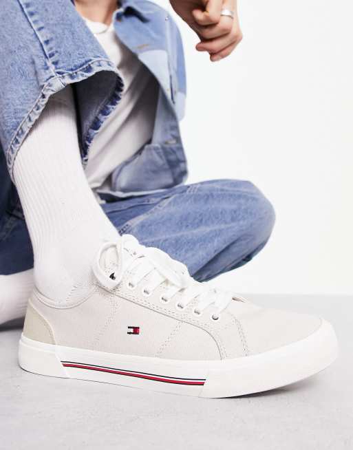 - tommy hilfiger core corporate canvas trainers in white