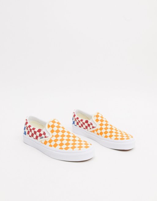 - vans slip on checkerboard red white