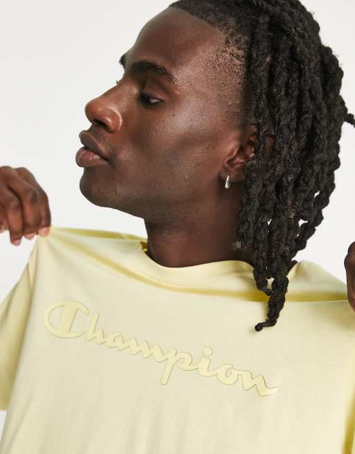 - yellow and black champion shirt