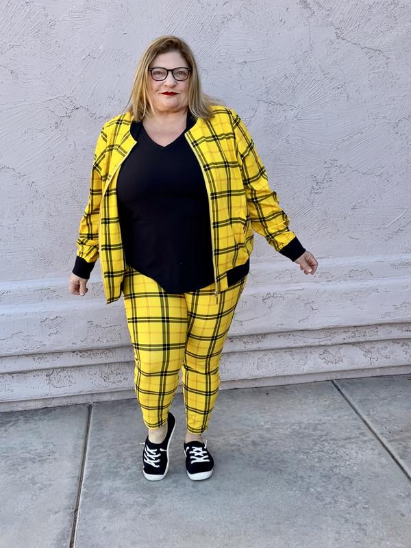 Product id: Yellow plaid 2025 pants plus size