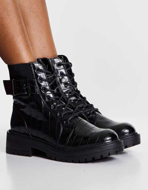 Product id: Combat boot 2025 buckles croco black