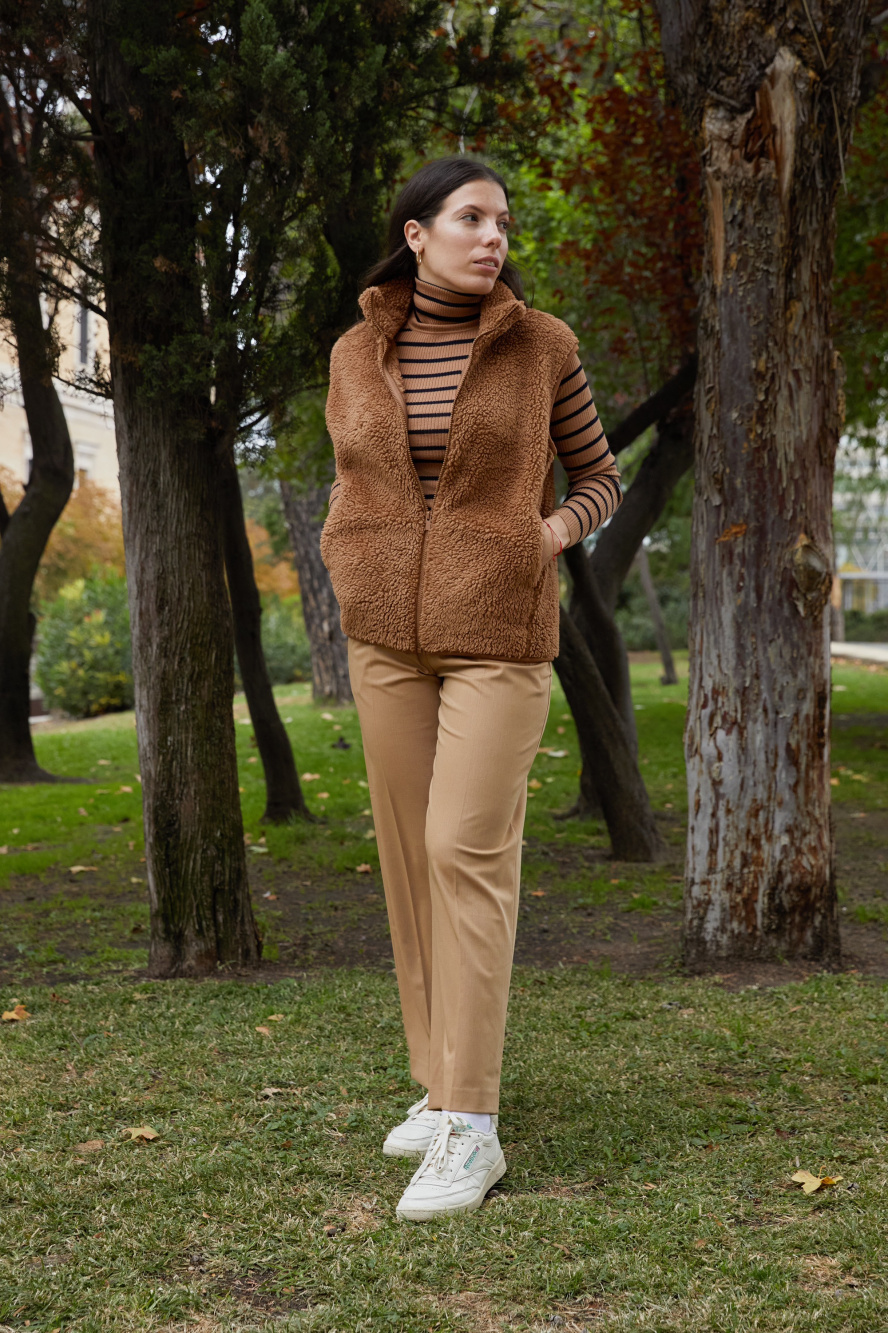 - long sleeve dress with fur vest